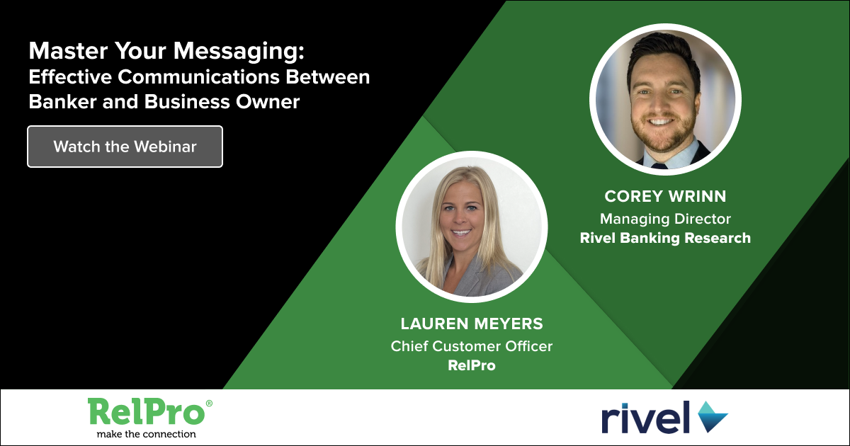 How you connect with business owners matters as much as what you say. Join RelPro and Rivel Banking Research for best practices to master your messaging to clients and prospects.